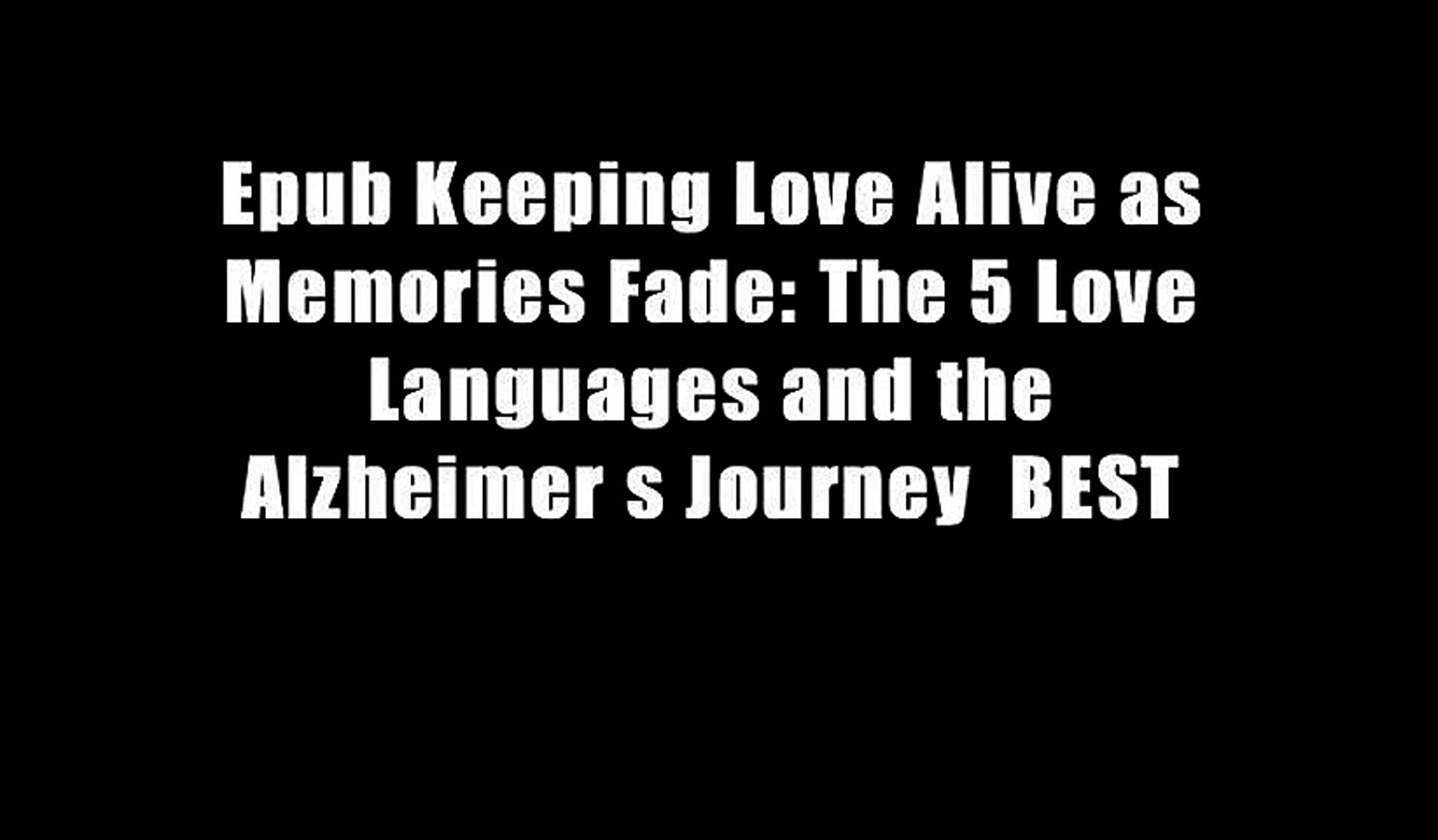 Epub Keeping Love Alive As Memories Fade The 5 Love Languages And The Alzheimer S Journey Best Video Dailymotion
